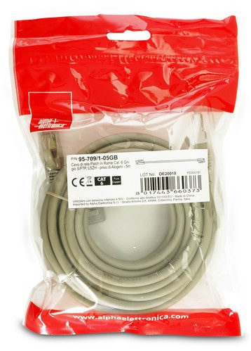 ALPHA ELETTRONICA - Cavo di rete Patch in Rame Cat. 6 Grigio S/FTP, LSZH - privo di Alogeni - 5m 95-709/1-05GB