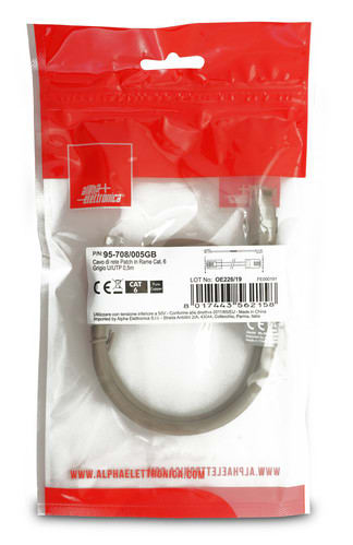 ALPHA ELETTRONICA - Cavo di rete Patch in Rame Cat. 6 Grigio U/UTP 0,5m