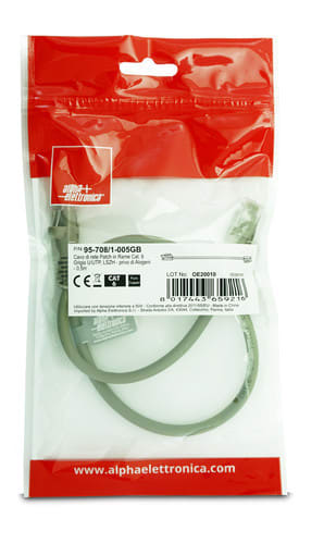 ALPHA ELETTRONICA - Cavo di rete Patch in Rame Cat. 6 Grigio U/UTP, LSZH - privo di Alogeni - 0,5m 95-708/1-005GB