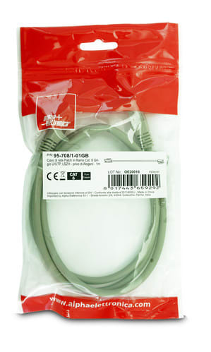 ALPHA ELETTRONICA - Cavo di rete Patch in Rame Cat. 6 Grigio U/UTP, LSZH - privo di Alogeni - 1m 95-708/1-01GB