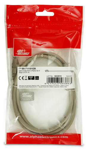 ALPHA ELETTRONICA - Cavo di rete Patch in Rame Cat. 6A Grigio U/UTP 1m 95-711/01GB