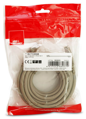 ALPHA ELETTRONICA - Cavo di rete Patch in Rame Cat. 6A Grigio U/UTP 5m 95-711/05GB