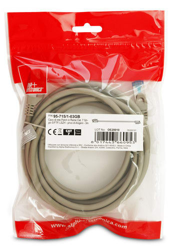 ALPHA ELETTRONICA - Cavo di rete Patch in Rame Cat. 7 Grigio S/FTP, LSZH - privo di Alogeni - 3m 95-715/1-03GB