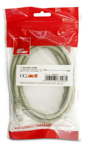 ALPHA ELETTRONICA - Cavo di rete Patch in Rame Cat. 8.1 Grigio S/FTP, LSZH - privo di Alogeni - 1m 95-720/1-01GB
