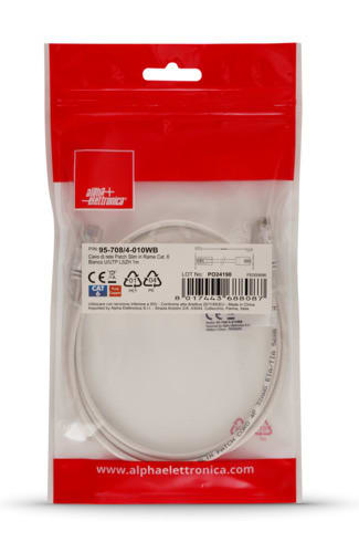 ALPHA ELETTRONICA - Cavo di rete Patch Slim in Rame Cat. 6 Bianco U/UTP LSZH 1m 95-708/4-010WB