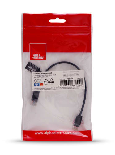 ALPHA ELETTRONICA - Cavo di rete Patch Slim in Rame Cat. 6 Nero U/UTP LSZH 0,25m