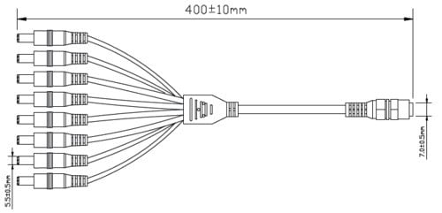 ALPHA ELETTRONICA - Cavo splitter di alimentazione DC - 1 femmina a 8 maschio - ø5,5-2,1mm - 40cm