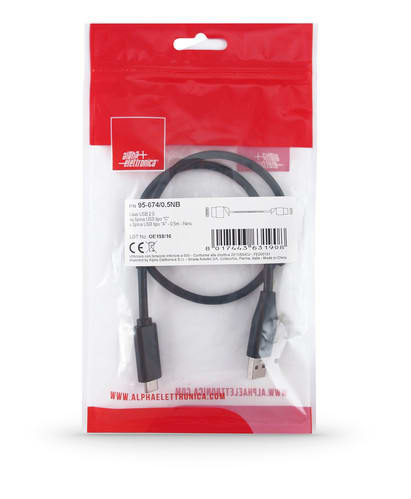 ALPHA ELETTRONICA - Cavo USB 2.0 da USB tipo-A maschio a USB tipo-C maschio - 0,48 Gbps - 0,5m - Nero