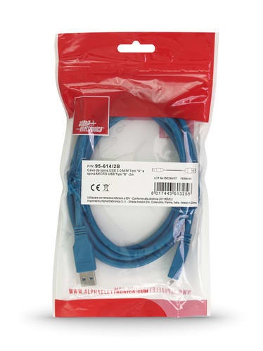 ALPHA ELETTRONICA - Cavo USB 3.2 da USB tipo-A maschio a Micro USB tipo-B maschio - 5 Gbps - 2m - Blu 95-614/2B