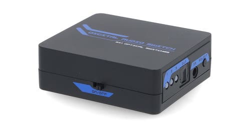 Questo commutatore per segnali audio ottici digitali con connettori Toslink consente di collegare tre sorgenti a un amplificatore audio.