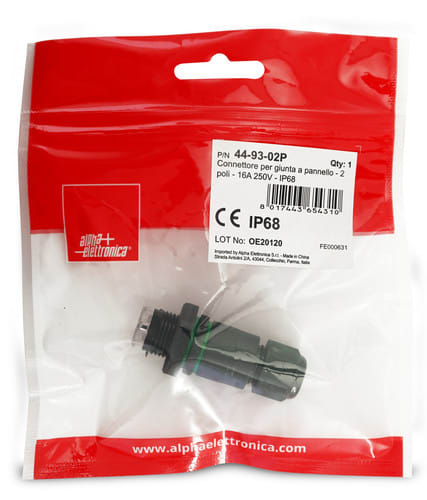 ALPHA ELETTRONICA - Connettore per giunta a pannello - 2 poli - 16A 250V - Senza necessità di utensili - IP68 44-93-02P