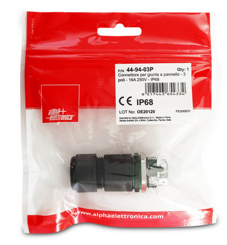 ALPHA ELETTRONICA - Connettore per giunta a pannello - 3 poli - 16A 250V - IP68 44-94-03P