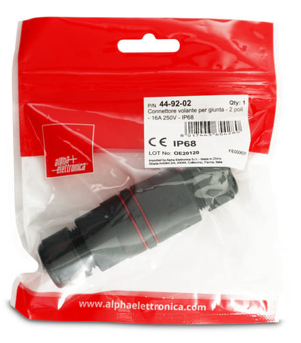 ALPHA ELETTRONICA - Connettore volante per giunta - 2 poli - 16A 250V - Senza necessità di utensili - IP68 44-92-02