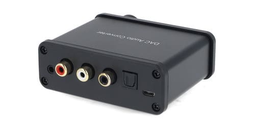- Converte audio Coax o TOSLINK in audio L/R + uscita cuffie.