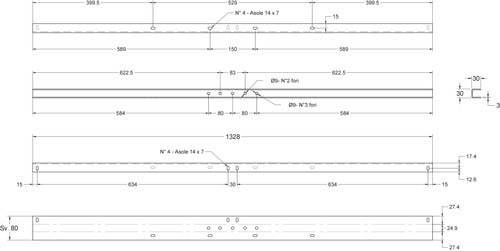 Coppia di profili zincati adatta per pannello da 140W e da 180W.