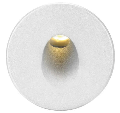 Cornice segnapasso rotonda in metallo per serie JO498. Vetro sigillato che protegge la sorgente luminosa. Montaggio a scatto (tool-less).