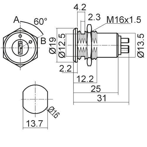 ALPHA ELETTRONICA - Deviatore a chiave 1P - on/on - Terminali a saldare 360-140