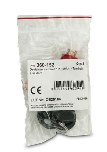 ALPHA ELETTRONICA - Deviatore a chiave 1P - on/on - Terminali a saldare 360-152