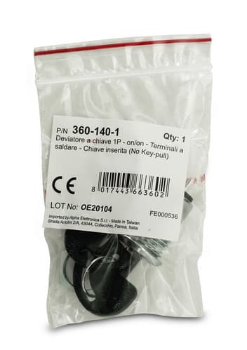 ALPHA ELETTRONICA - Deviatore a chiave 1P - on/on - Terminali a saldare - Chiave inserita (No Key-pull) 360-140-1