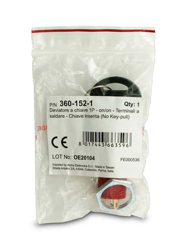 ALPHA ELETTRONICA - Deviatore a chiave 1P - on/on - Terminali a saldare - Chiave inserita (No Key-pull) 360-152-1