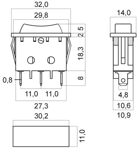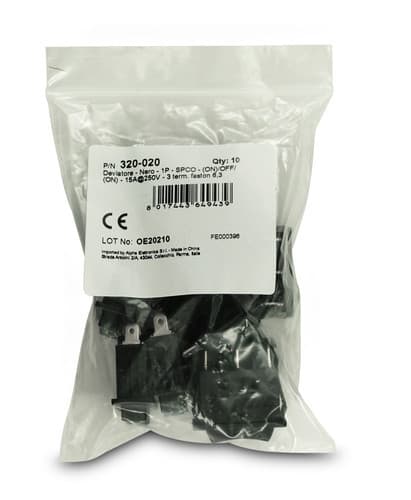 ALPHA ELETTRONICA - Deviatore - Nero - 1P - SPCO - (ON)/OFF/(ON) - 15A@250V - 3 term. faston 4,8 320-020