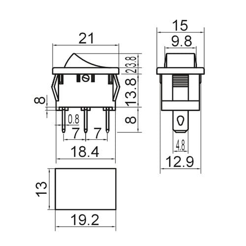 Foro fissaggio: 13mm x 19.2mm