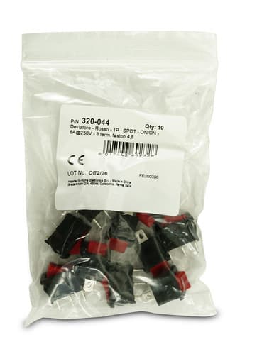 ALPHA ELETTRONICA - Deviatore - Rosso - 1P - SPDT - ON/ON - 6A@250V - 3 term. faston 4,8 320-044