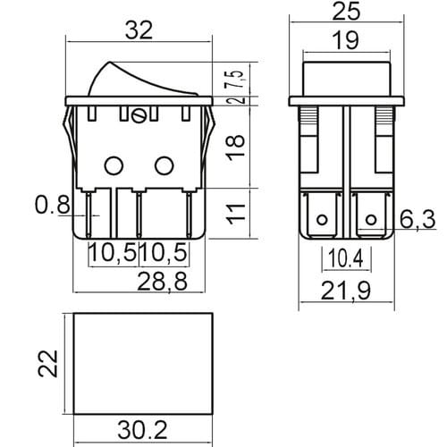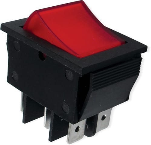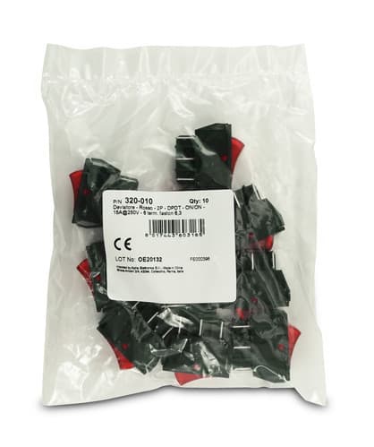 ALPHA ELETTRONICA - Deviatore - Rosso - 2P - DPDT - ON/ON - 15A@250V - 6 term. faston 6,3 320-010
