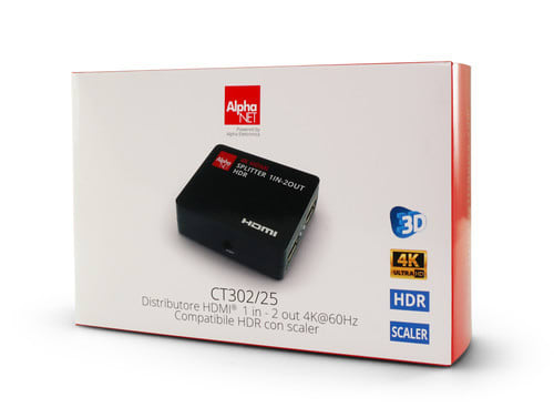 ALPHA ELETTRONICA - Distributore HDMI®, 1 in - 2 out 4K@60Hz - compatibile HDR - con scaler CT302/25