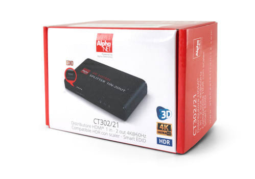 ALPHA ELETTRONICA - Distributore HDMI®, 1 in - 2 out 4K@60Hz con smart EDID - compatibile HDR - con scaler CT302/21