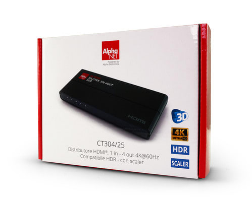 ALPHA ELETTRONICA - Distributore HDMI®, 1 in - 4 out 4K@60Hz - compatibile HDR - con scaler
