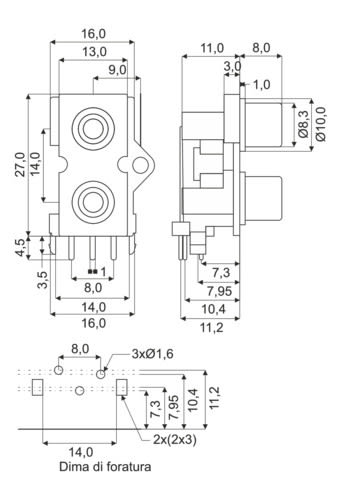ALPHA ELETTRONICA - Due prese RCA per circuito stampato 18-69