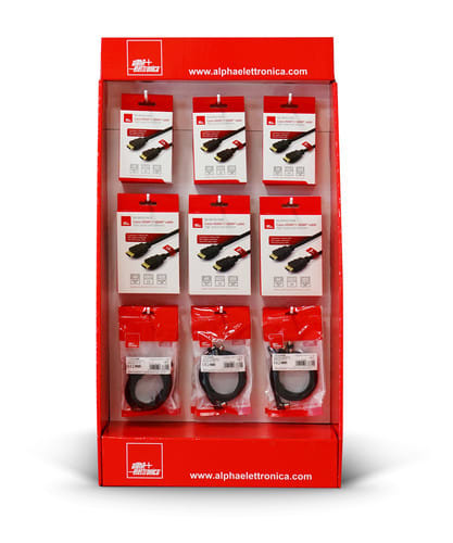 Pratico espositore realizzato per favorire l'esposizione di cavi HDMI a antenna TV in tutti i punti vendita.