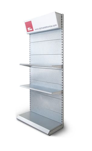 ALPHA ELETTRONICA - Espositore da terra 230x100x45cm con mensole e ganci ESP.15