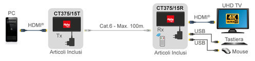 E' possibile collegare al trasmettitore un PC tramite cavo USB e collegare al ricevitore due diverse periferiche (mouse e tastiera per esempio) sempre tramite cavo USB che comunicano direttamente con il PC.