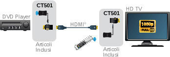 - tramite il cavo HDMI connettere i due adattatori.
