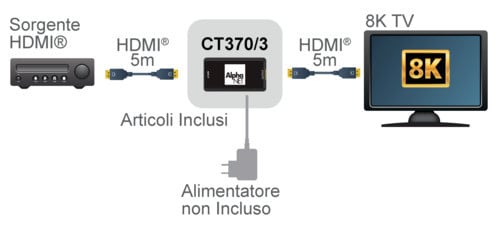 ALPHA ELETTRONICA - Extender ripetitore HDMI 8K UHD (10m), 4K (13m) CT370/3
