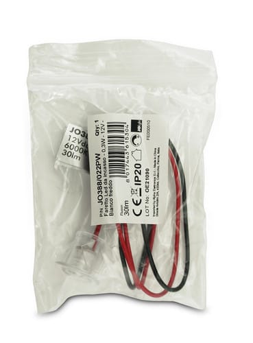 Integrano all'interno un Led ad alta luminosità da 5mm con angolo di emissione stretto. Il fascio di luce concentrato consente di realizzare punti luce ed effetti tipo cielo stellato. Grazie alla resistenza interna possono essere alimentati a 12Vdc in parallelo.
