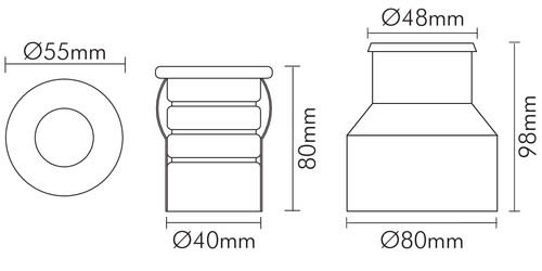 Faretto con driver elettronico integrato con ingresso capacitivo. Utilizzare con alimentatore 3 volte la potenza nominale.
