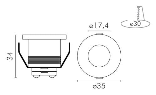 ALPHA ELETTRONICA - Faretto LED da incasso rotondo - 2,5W - Alluminio satinato - Bianco caldo - Serie Metro JO390/010SWW