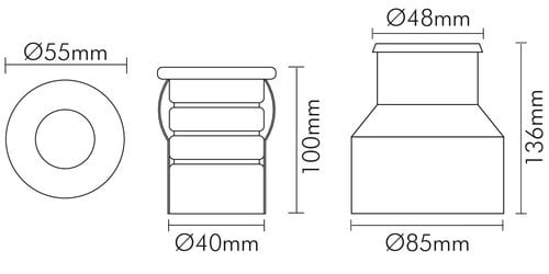 Faretto con driver elettronico integrato con ingresso capacitivo. Utilizzare con alimentatore 3 volte la potenza nominale.