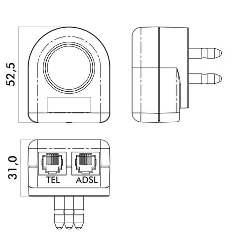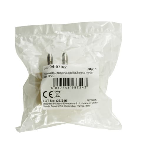ALPHA ELETTRONICA - Filtro ADSL da spina 3 poli a 2 presa modulare RJ11 6P2C 94-970/2