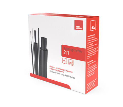 ALPHA ELETTRONICA - Guaina termorestringente in dispenser - Poliolefina - Restringimento 2:1 - ø4,8mm - Nera - 10m 520-R14