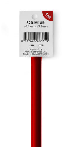 ALPHA ELETTRONICA - Guaina termorestringente in polybag - Poliolefina - Restringimento 2:1 - ø6,4mm - Rossa - 1m 520-M18R