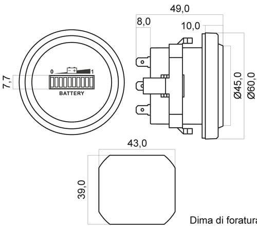 Dima di foratura: 43x39