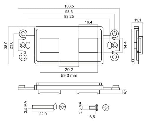 Supporto per frutti Keystone a 2 posizioni.