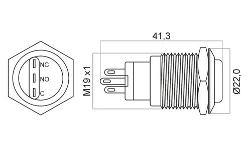 ALPHA ELETTRONICA - Interruttore a Pulsante antivandalo ø19mm bistabile - 1P - SPDT - ON/ON - 5A@250Vac - 3 term. a saldare