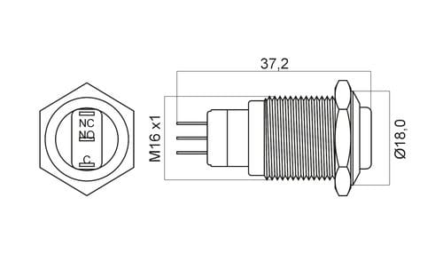 ALPHA ELETTRONICA - Interruttore antivandalo ø16mm bistabile - 1P - SPDT - ON/ON - 5A@250Vac - 3 term. a saldare 330-072L
