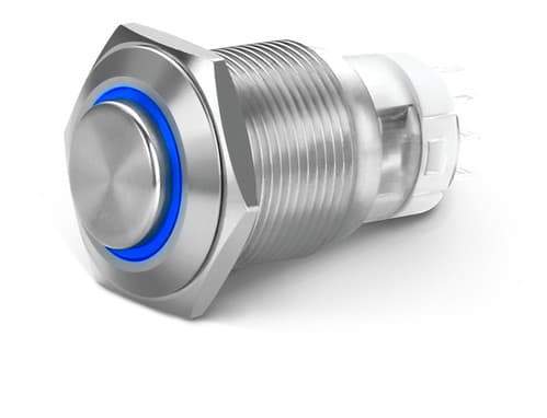 ALPHA ELETTRONICA - Interruttore antivandalo ø16mm bistabile luminoso Blu - 24V - 1P - SPDT - ON/ON - 3A@250Vac - 5 term. a saldare