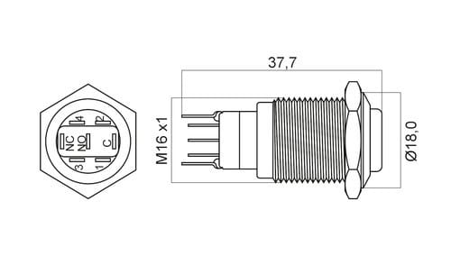 ALPHA ELETTRONICA - Interruttore antivandalo ø16mm bistabile luminoso Rosso/Verde - 24V - 1P - SPDT - ON/ON - 5A@250Vac - 7 term. a saldare 330-075L-14